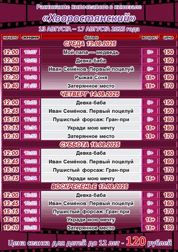 Расписание на нашем сайте center-kino.ru/