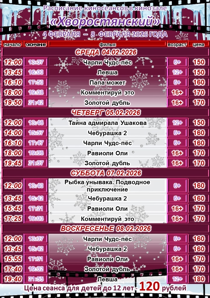 | 02.02.2026 | Кинотеатр |