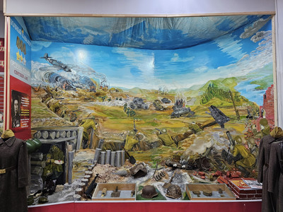 3). Стоит обратить внимание на макеты боевого оружия: ППС -43 (пистолет-пулемет Судаева), карабин Симонова (СКС), винтовку Мосина и (пистолет - пулемет Шпагина (ППШ). 4). На витринах представлены подлинные предметы, найденные на местах боев поисковыми отрядами Смоленской и Новгородской областей. Для посетителей (по желанию) демонстрируется видеофильм о Полном кавалере ордена Славы А.М. Сергееве или фильм, снятый Куйбышевской студией «Два друга» о Героях Советского Союза В. Суркове и В. Мамистове.