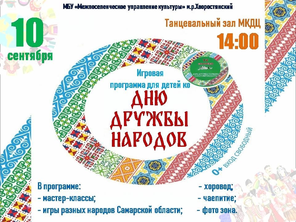 Приглашаем вас, 10 сентября в 14:00 в Межпоселенческий культурно-досуговый центр на игровую программу, посвященную Дню дружбы народов!🤝🏻