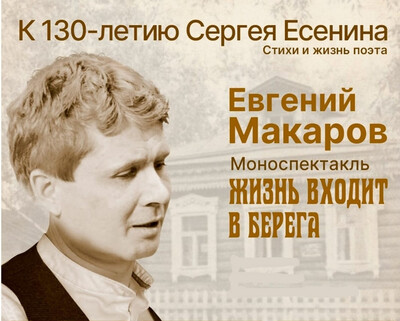 Дорогие читатели! В пятницу, 17 октября в 11.00 , в модельной библиотеке «48 меридиан» состоится моноспектакль «Жизнь входит в берега», посвященный юбилею Есенина. В главной роли - талантливый поэт мелодекламатор Евгений Макаров.